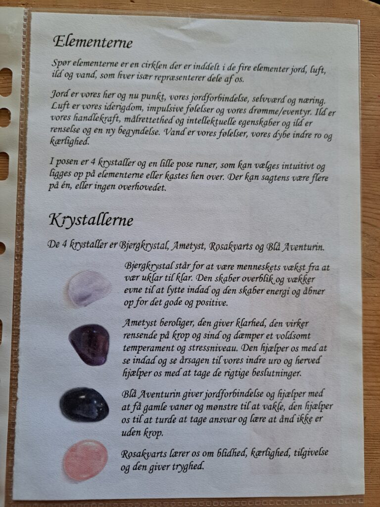 I dag – joo, jeg ville bruge stort set de samme stik ord, ganske få ændringer, både ved runerne og elementerne, men det er nok mest kosmetisk, det jeg til gengæld har ændret, er det med stene, det er ikke længer krystaller jeg bruger, men jeg har et lille sæt af dimser, nogen sten som fx flint, granit, rav, jeg har et par knogler, fossiler, nogen mønter et par tosset terninger, det er nærmest gået hen og blevet et helt krave sæt og det bruger jeg så bare ligesom krystallerne her i spillet.